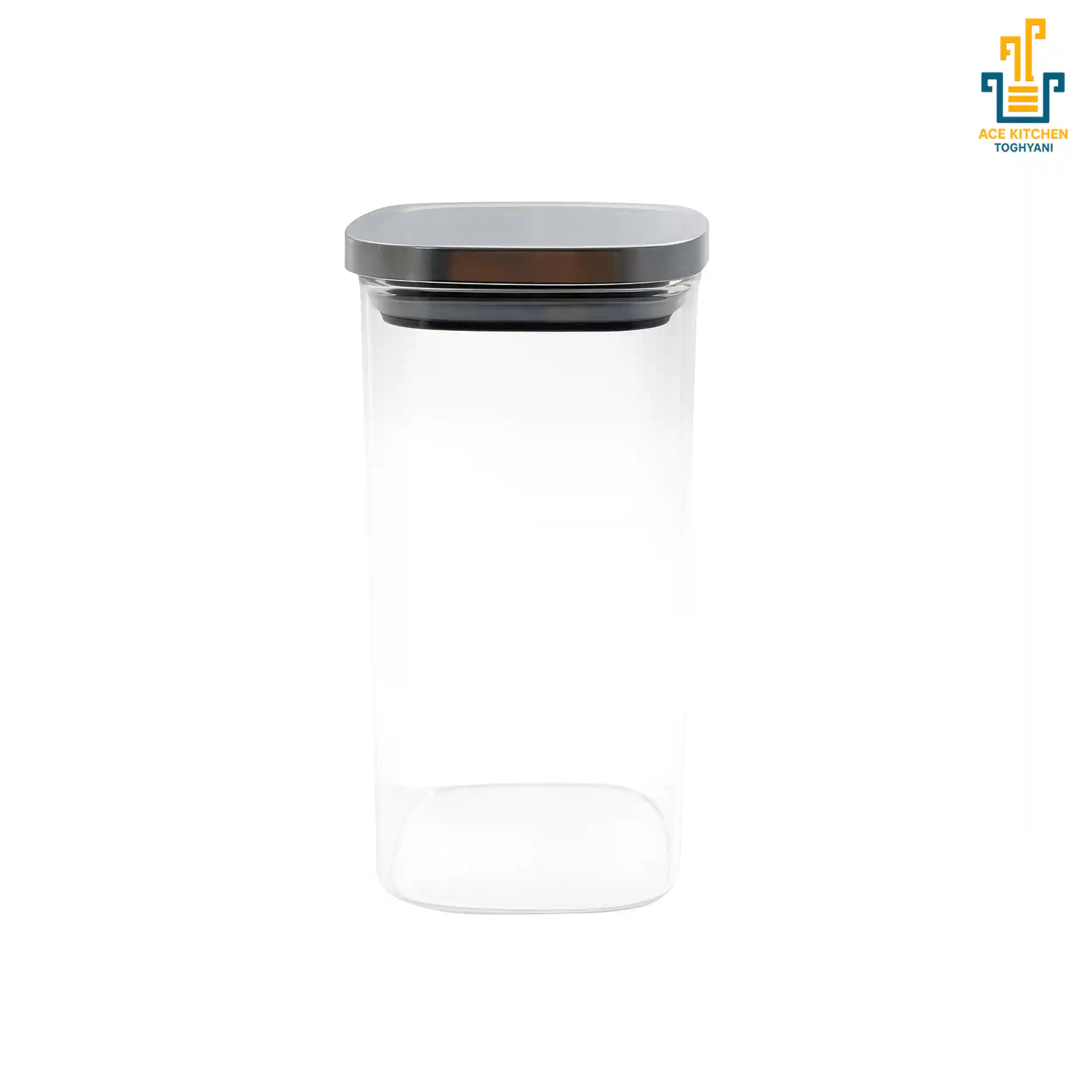 بانکه پیرکس شفاف Ace Kitchen با وزن 220 گرم و ارتفاع 15 سانتیمتر، مقاوم و شیک، مناسب برای نگهداری ادویه، خشکبار و مواد غذایی خشک.