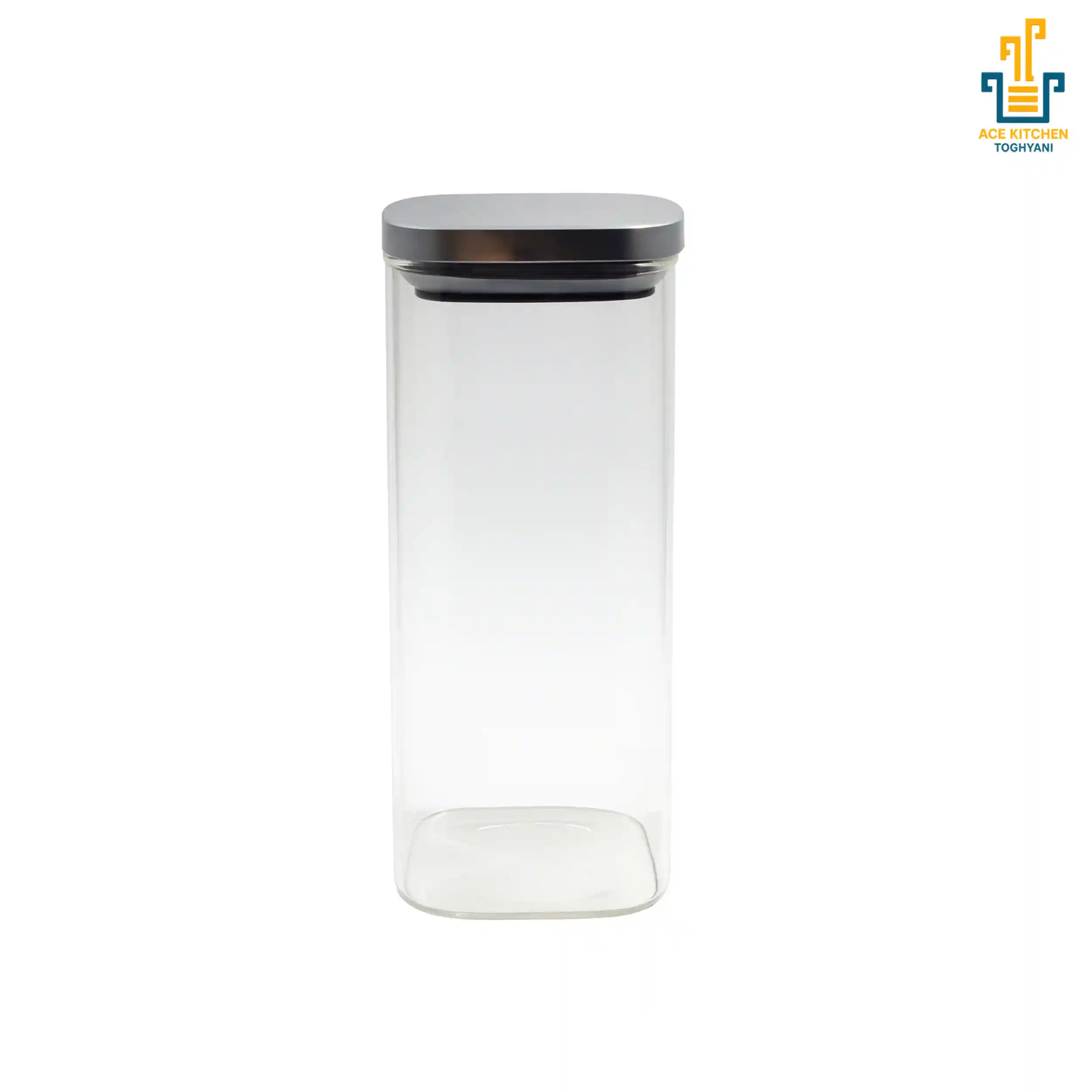 بانکه پیرکس شفاف Ace Kitchen با وزن 300 گرم و ارتفاع 20 سانتیمتر، مقاوم و شیک، مناسب برای نگهداری ادویه، خشکبار و مواد غذایی خشک.