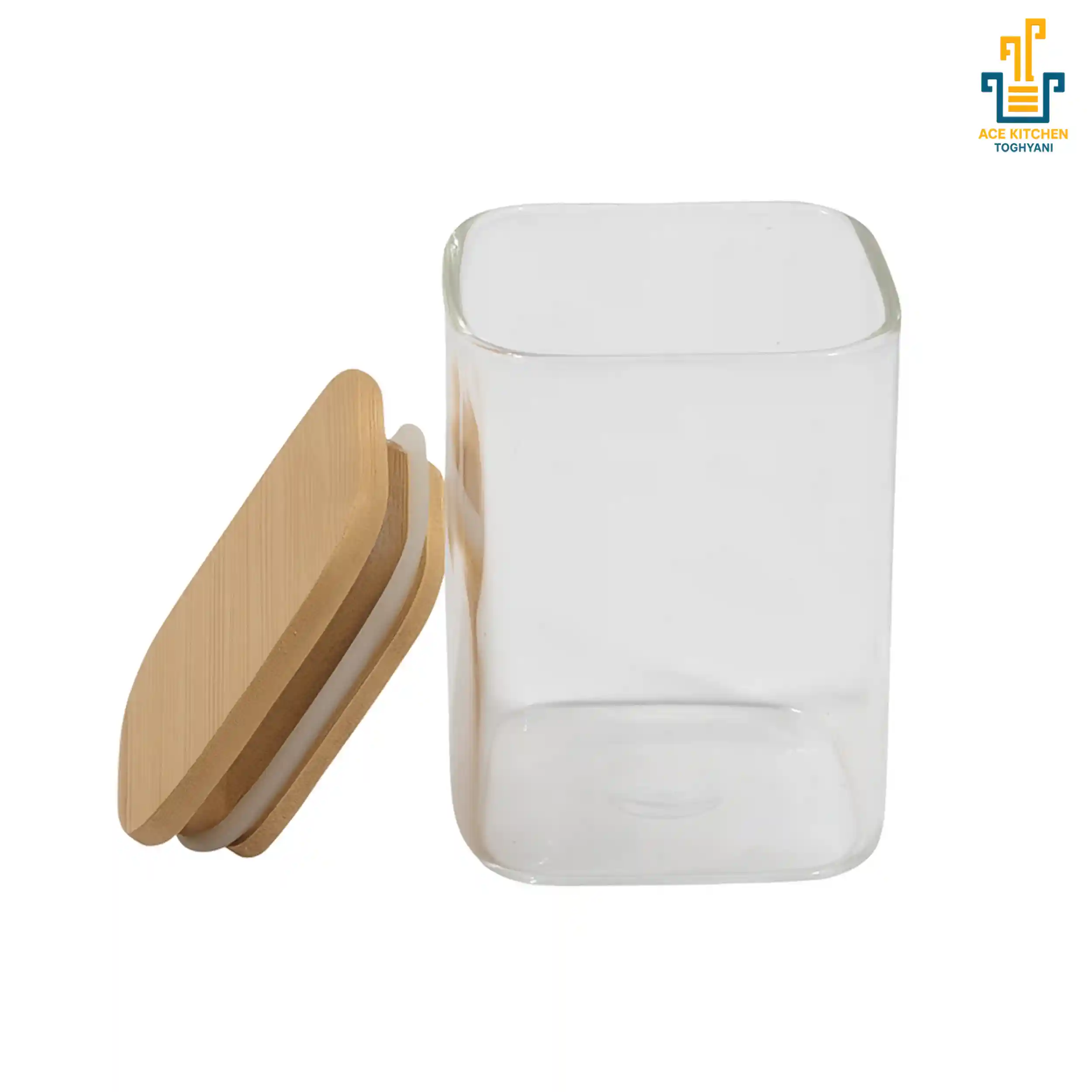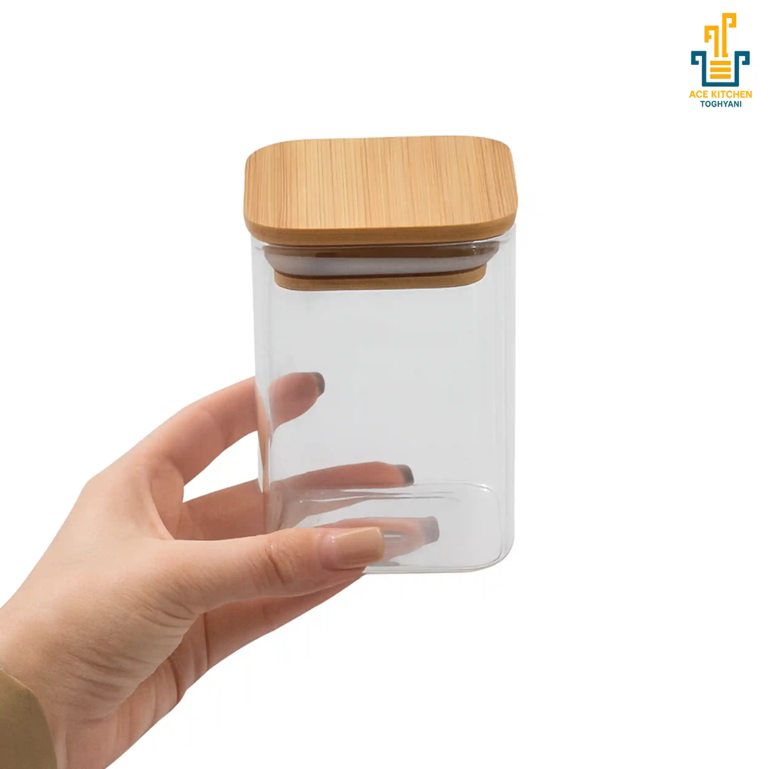 بانکه پیرکس درب بامبو Ace Kitchen؛ کوچک، شفاف و مناسب نگهداری ادویه، چای، قهوه و تنقلات کمحجم با طراحی ساده و کاربردی.