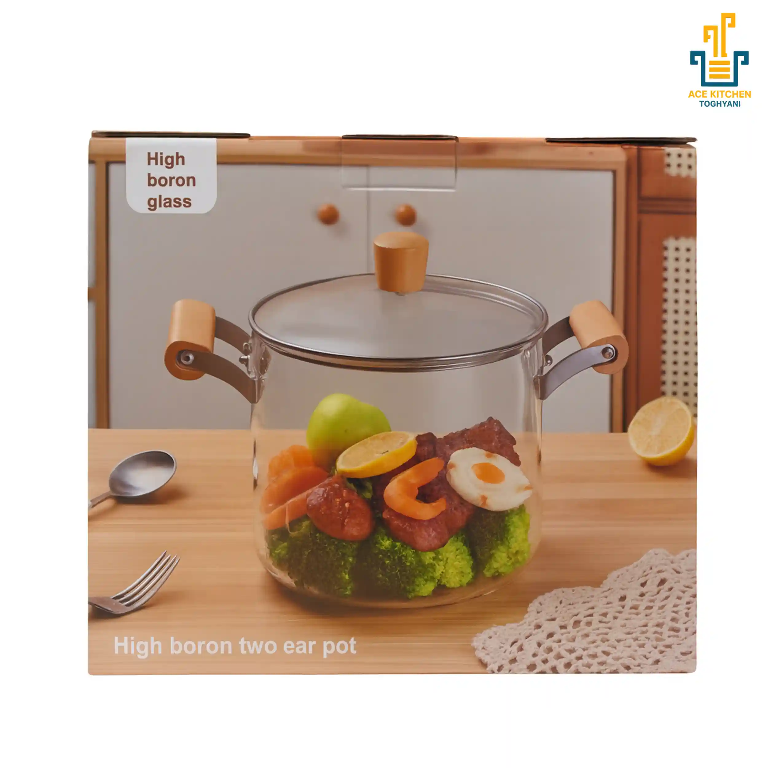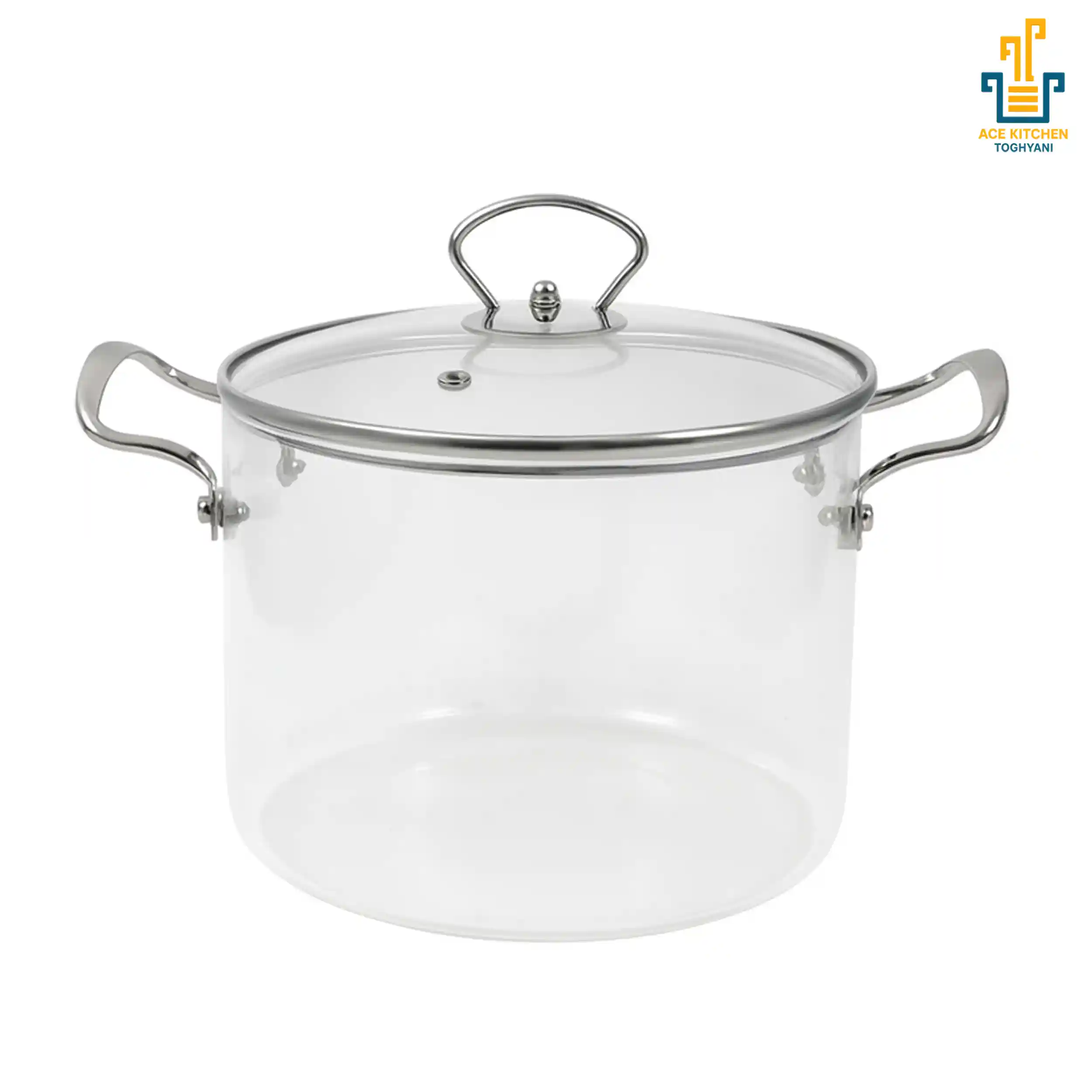 قابلمه پیرکس دسته استیل Ace Kitchen | آس کیچن – ترکیب شفافیت پیرکس و قدرت استیل برای پخت حجیم