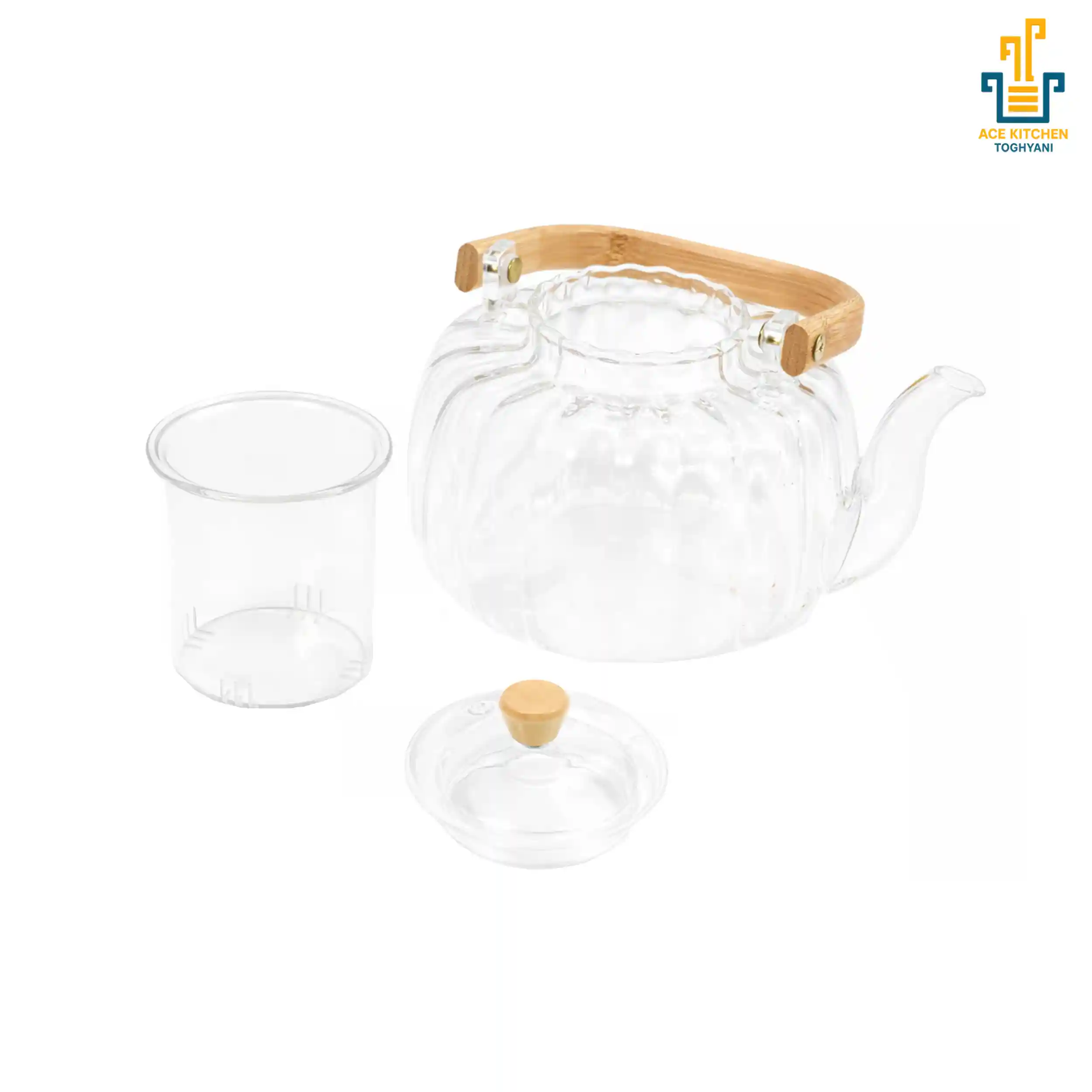 قوری پیرکس دسته بامبو Ace Kitchen | آس کیچن – شفافیت پیرکس در کنار گرمای طبیعت