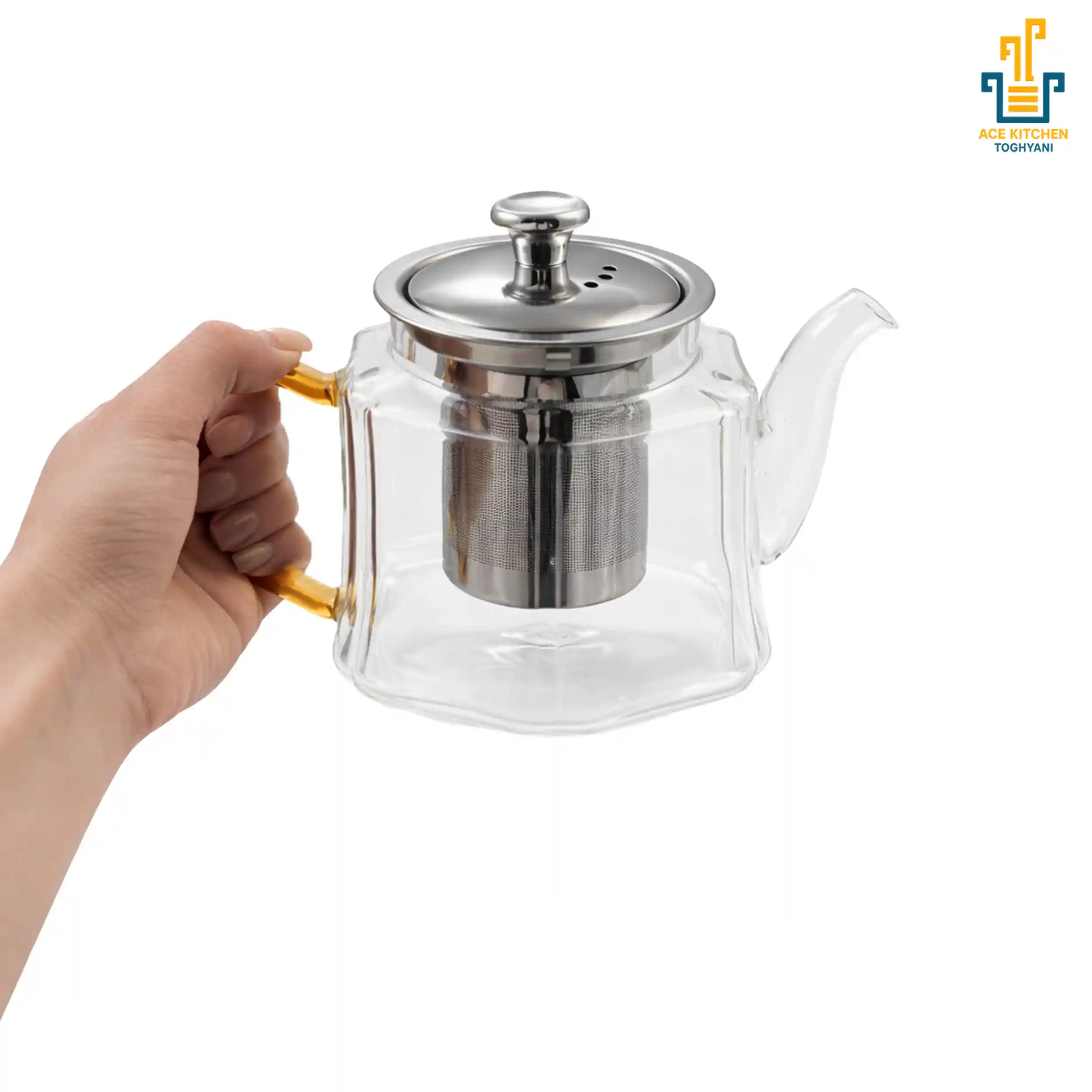 قوری پیرکس دسته طلایی Ace Kitchen | آس کیچن – ظرافت طلایی در کنار شفافیت پیرکس